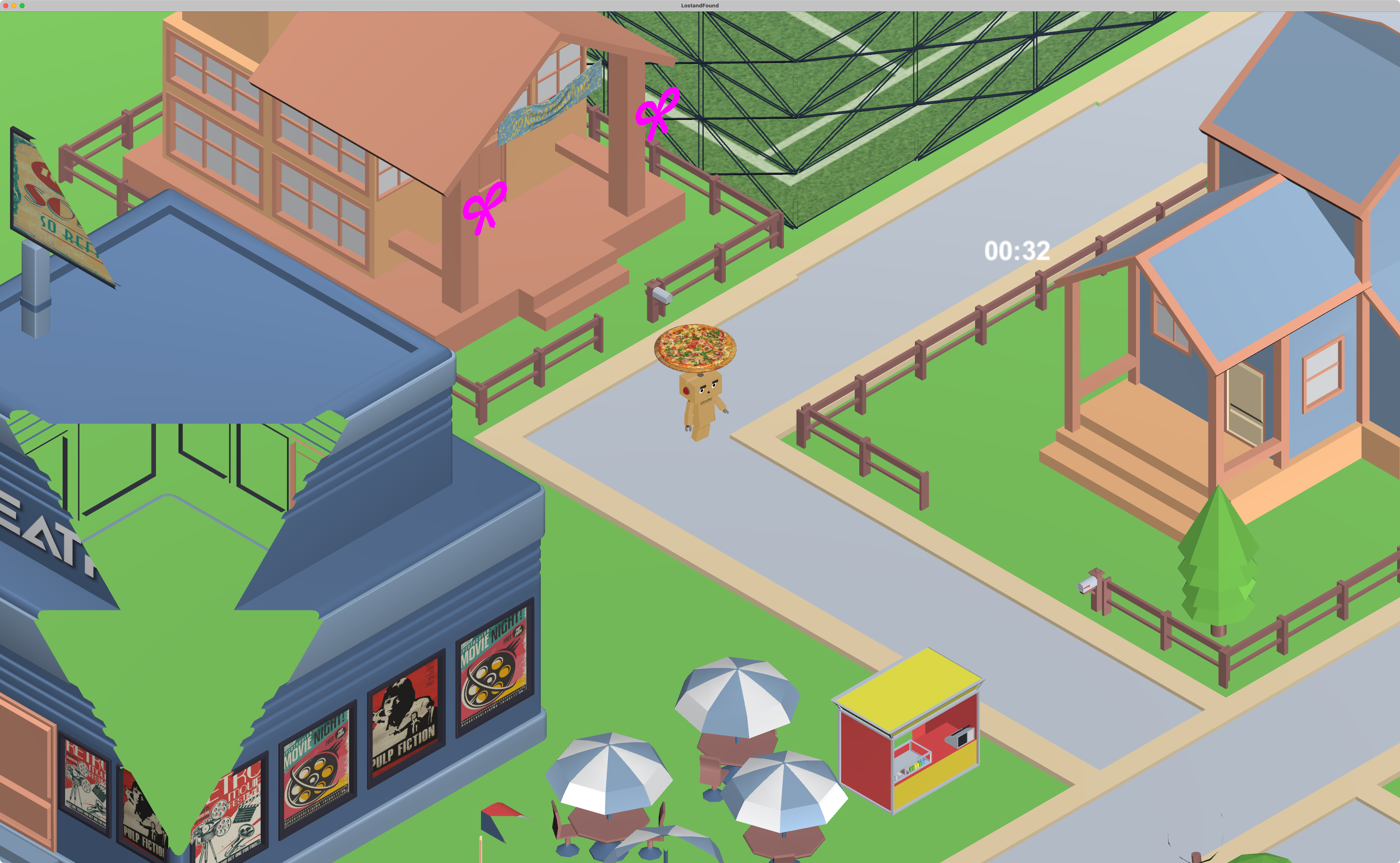 Tokyo Game Jam Spring 2025にて、42 Tokyoの学生5人チームで3日間で制作した探索型デリバリーゲーム『Lost and Found』。 Alibaba CloudとMeltingHackが共同開催するゲームハッカソンで、3位入賞を果たした。 プレイヤーは配達ロボットとなり、街に落ちている落とし物を、手がかりをもとに正しい持ち主のもとへ届ける。 会話やテキストによる説明を用いず、環境・音・配置といった非言語的な情報のみで理解を促す体験設計を目指した。 本作は「小さな行動が、静かに世界を変えていく」というテーマのもと、プレイヤーの行動が翌日の街に反映される構造を通して、他者との間接的なつながりを感じさせることを目指した。